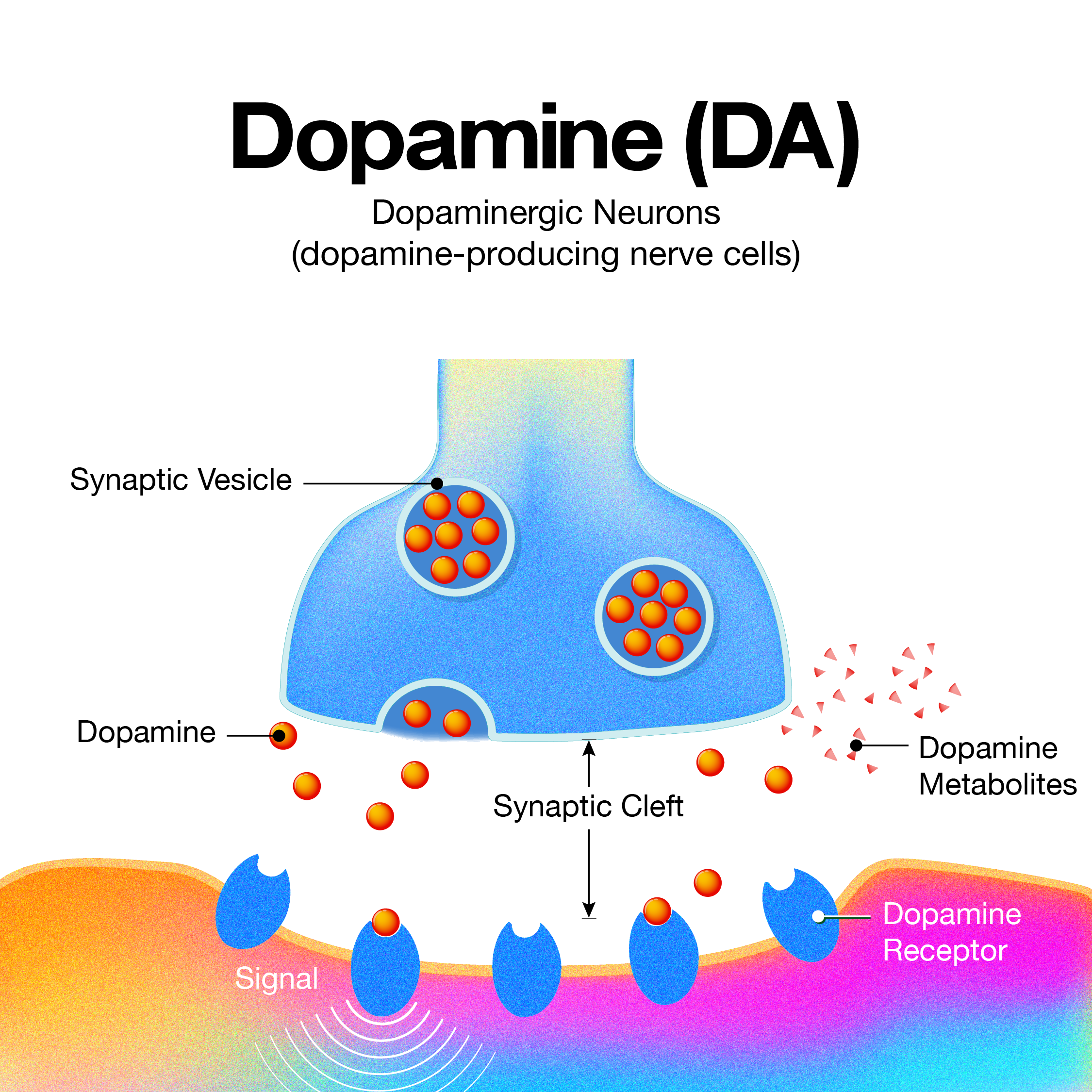 Arguably the most discussed neurotransmitter today, Dopamine (DA) plays a critical role in attention and focus levels, motivation and reward processing, movement, and mood regulation, and even working memory and executive function (planning, decision-making, and problem solving). DA plays a crucial role in regulating focus and motivation by incentivizing us to pursue rewards and engage in "challenging" goal-directed behavior, particularly when anticipating pleasurable outcomes in the future.