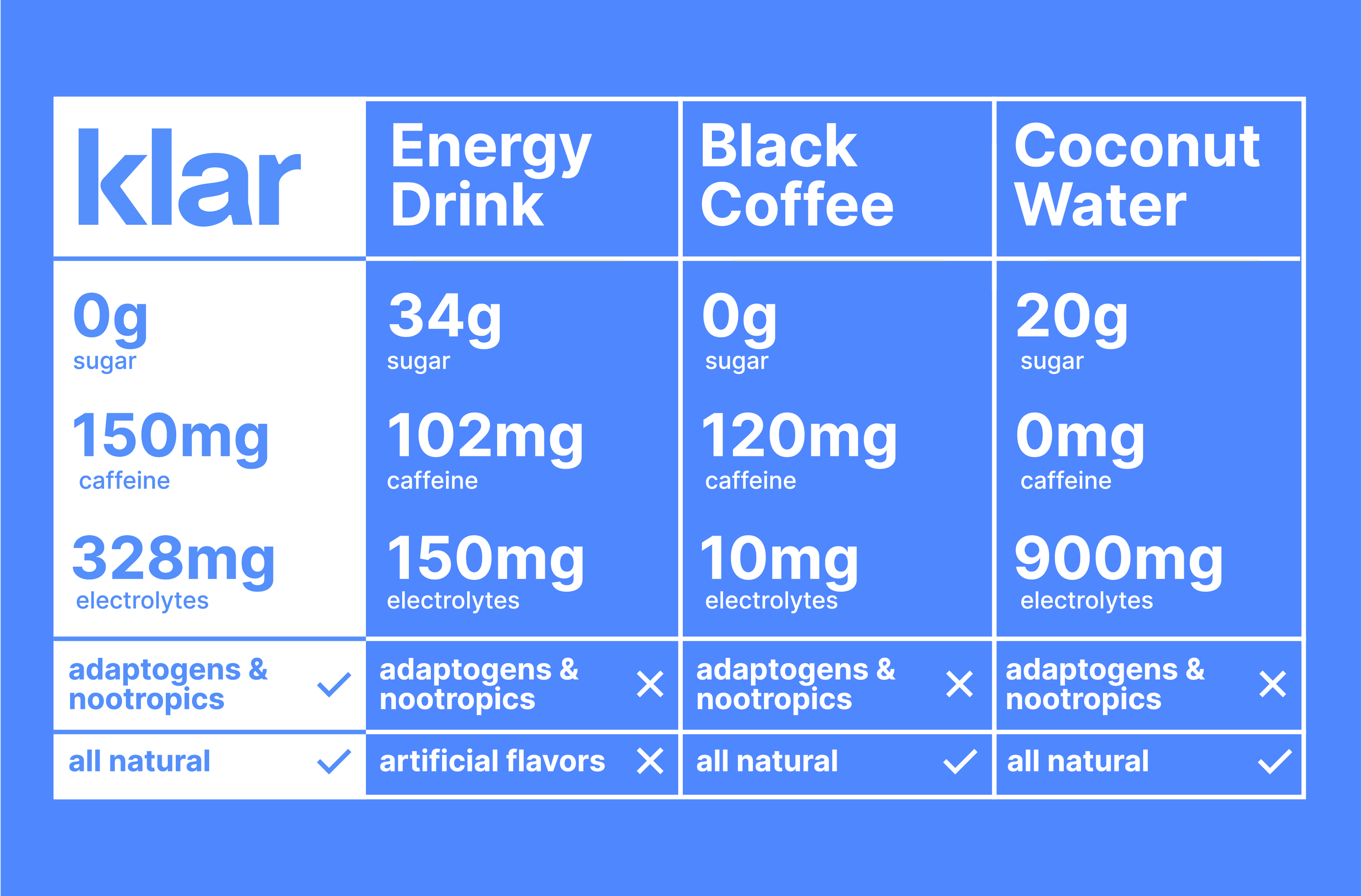 - Klar is intended to promote higher energy levels, a greater ability to concentrate on mental tasks, and greater problem-solving abilities.